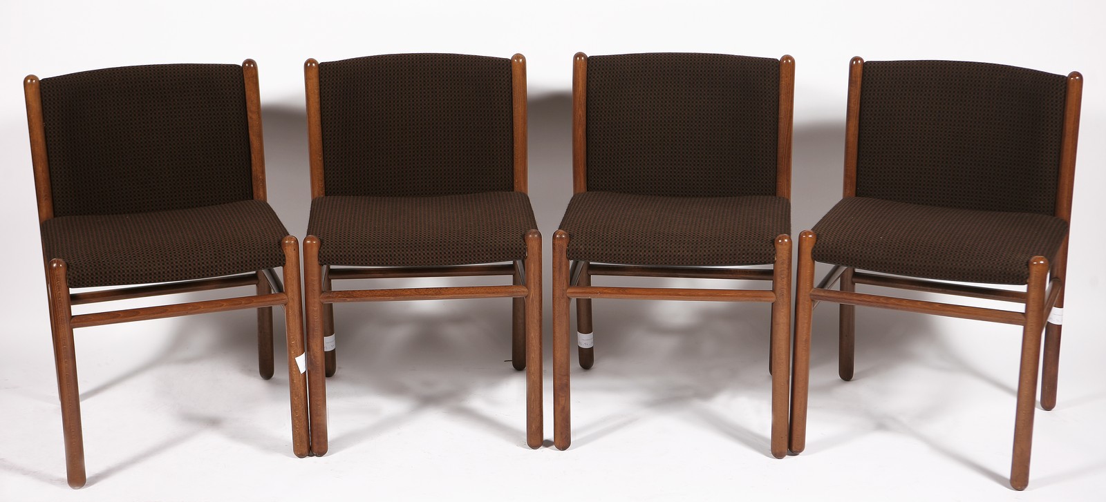 FRATTINI GIANFRANCO (1926 - 2004) Quattro sedie Nuela. Legno e tessuto. Cm...