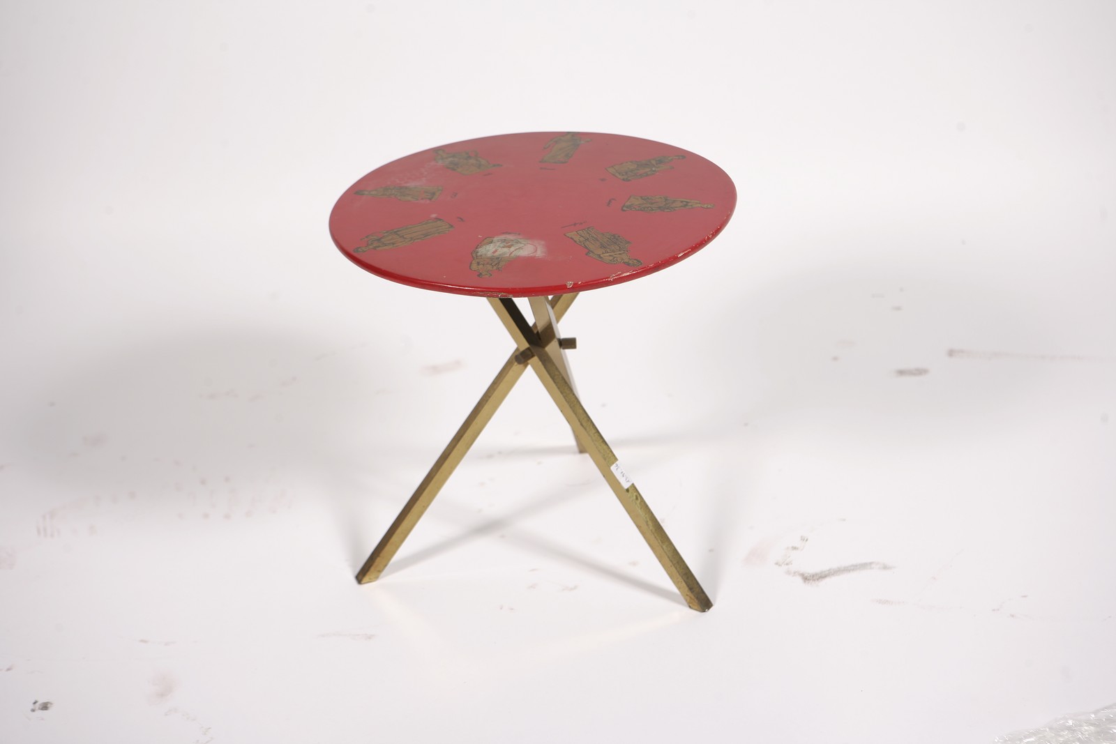 FORNASETTI PIERO (1913 - 1988) Tavolino. Ottone e legno laccato. Cm 40,00 x...