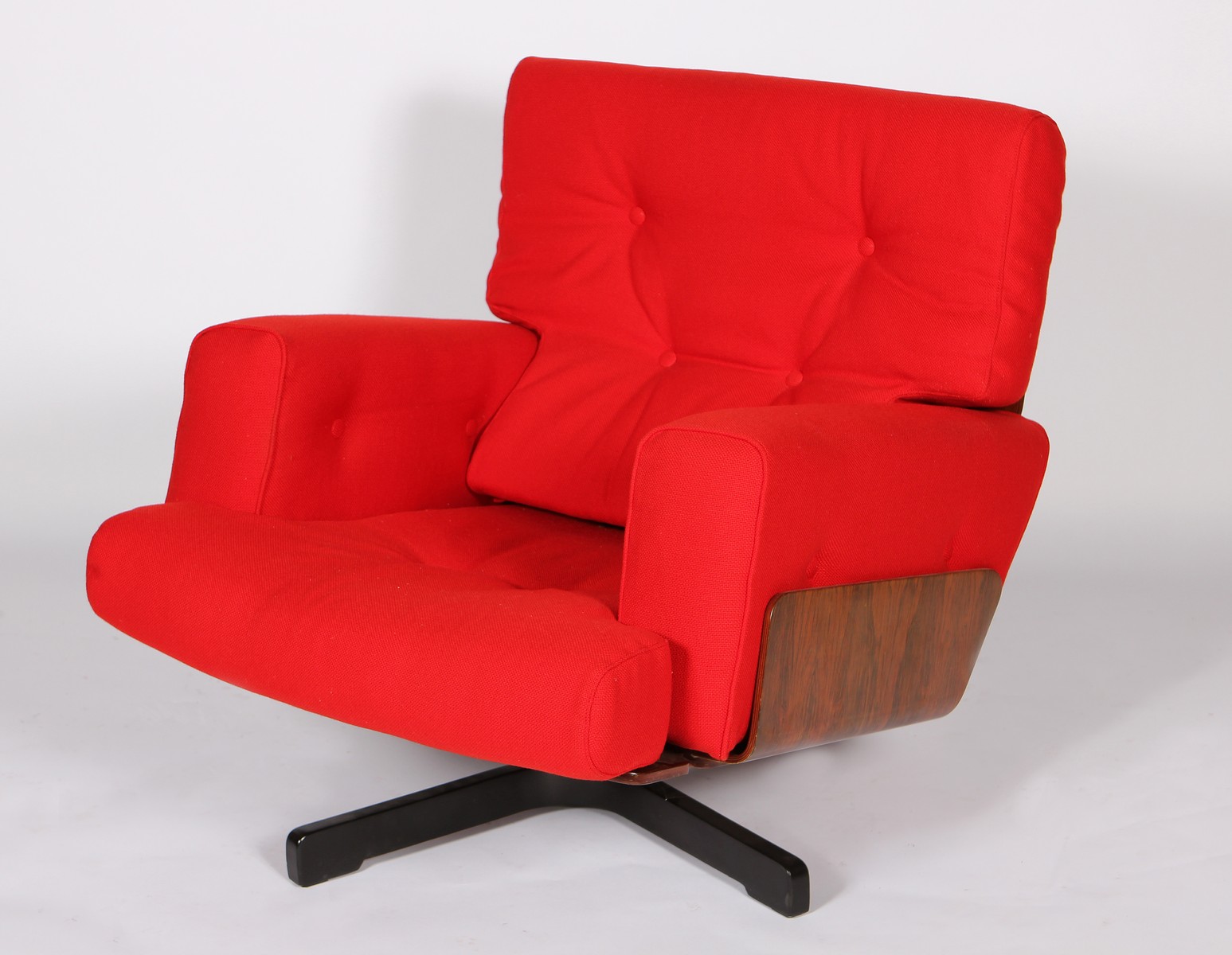 Poltrona Cinova. Tessuto e legno. Cm 79,00 x 86,00 x 80,00. Compensato curvato e tessuto rosso.