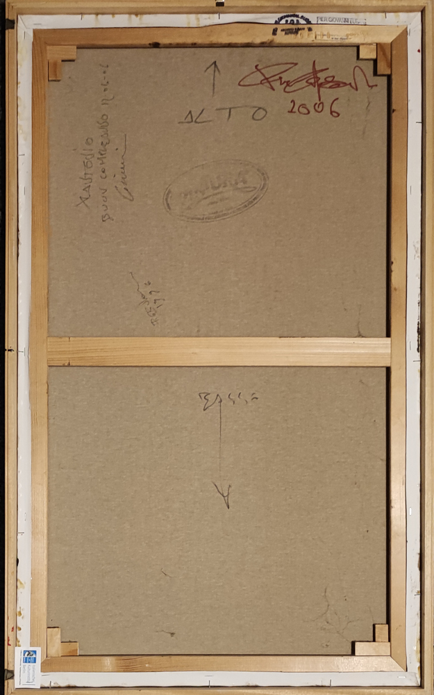 Tecnica mista su tela 60x100 cm; firma, titolo e anno al retro.