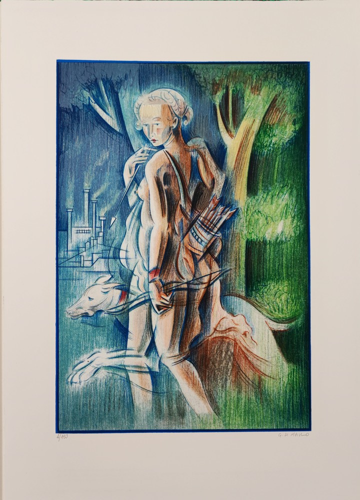 Di Mauro Gabriele - Diana la dea cacciatrice, 1998, cartella composta da n.1 litografia 50x70 cm; firma in basso a destra, tiratura 2/150 in basso a sinistra.