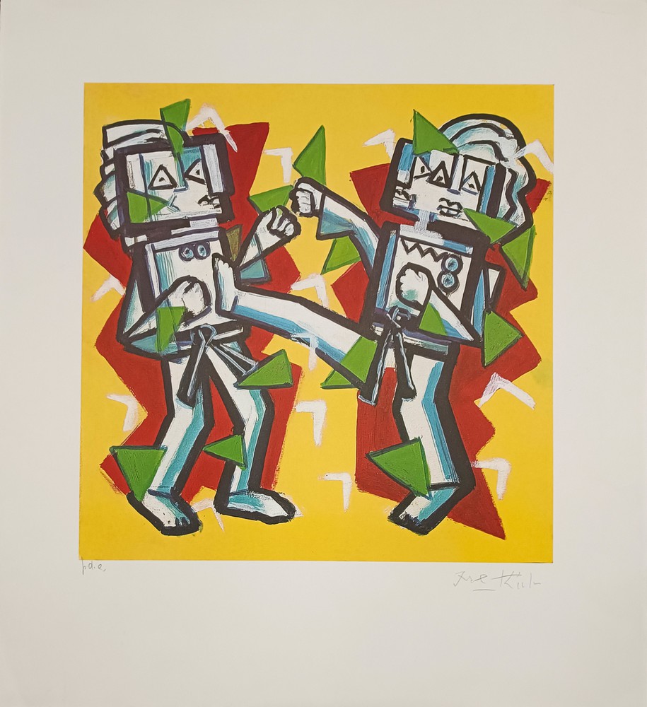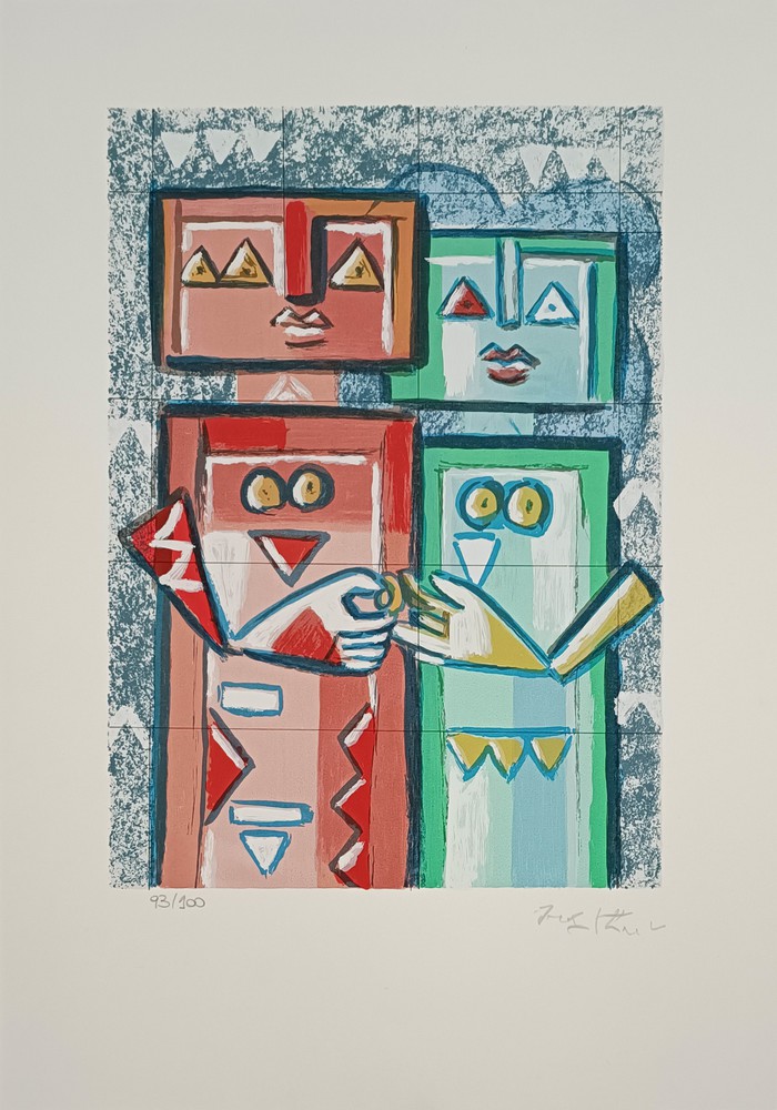 Ibrahim Kodra - Totem, litografia 55x50 cm; firma in basso a destra, tiratura Pda in basso a sinistra.