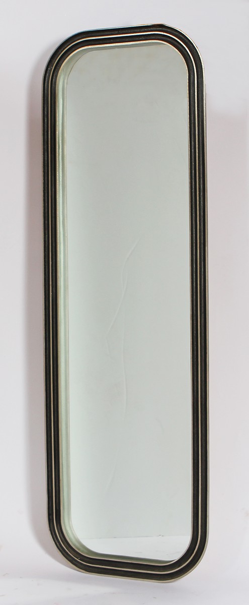 BURCHIELLARO LORENZO (n. 1933) Specchiera. Alluminio e specchio. Cm 152,00 x 50,00 x 5,00. Cornice in alluminio stampato ed inciso. Firma al retro. Annio '60.