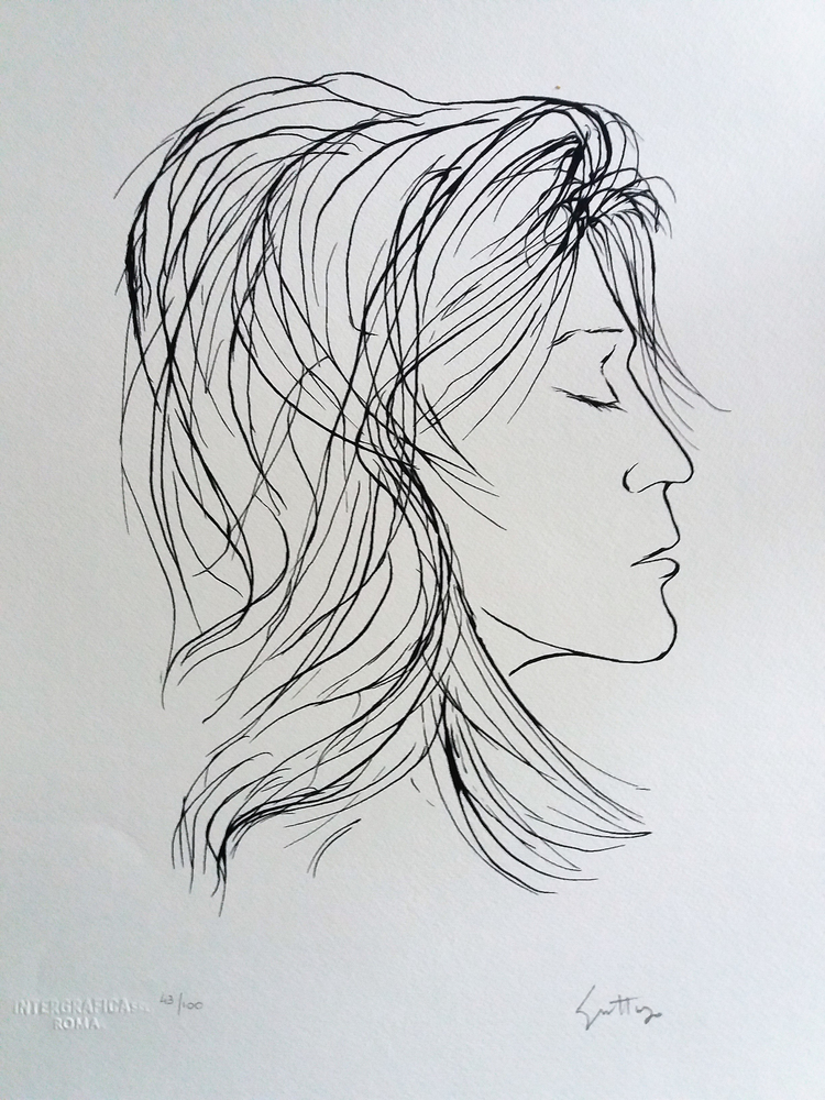 Litografia 32x45 cm; firma in basso a destra; tiratura 43/100 e timbro a secco Integrafica Roma in basso a sinistra.