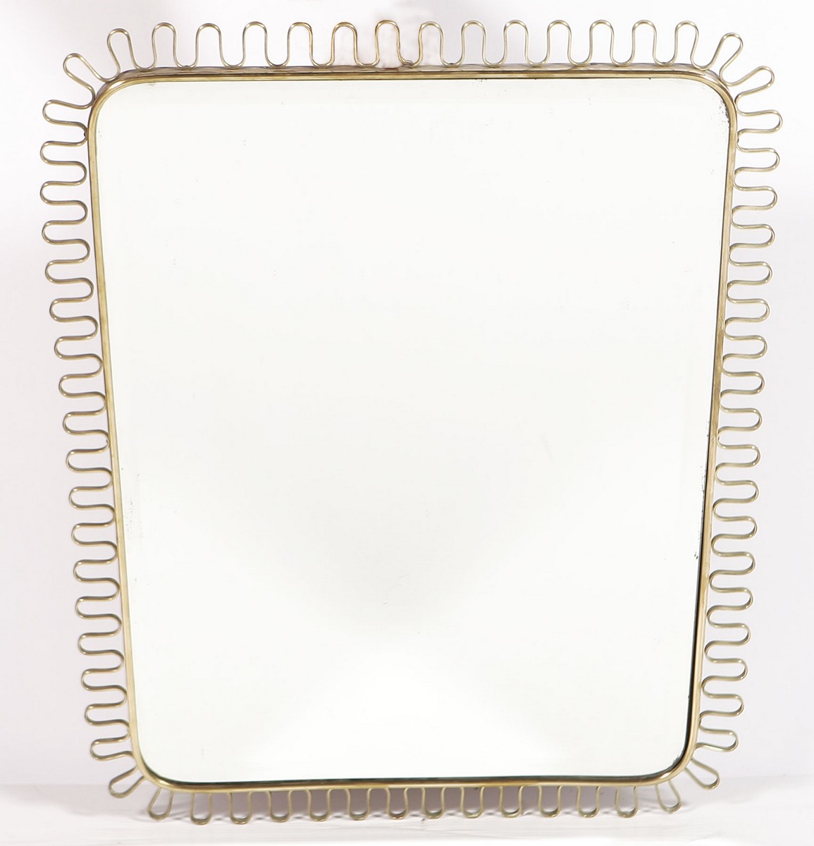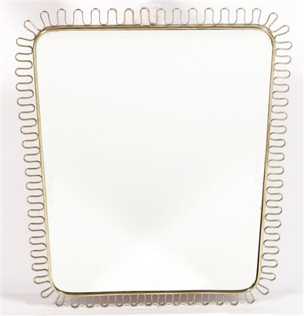 MANIFATTURA ITALIANA DEGLI INIZI DEL XX SECOLO Specchio. Ottone e cristallo. Cm 55,00 x 68,00. Anni '50. Cornice in ottone con serpentina.