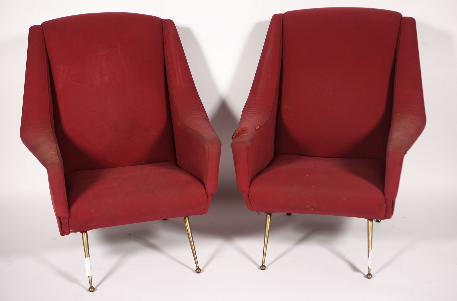 RADICE GIGI Coppia di poltrone. Legno e tessuto. Cm 48,00 x 83,00 x 70,00. Attribuite a Gigi Radice per Minotti. Anni `50.