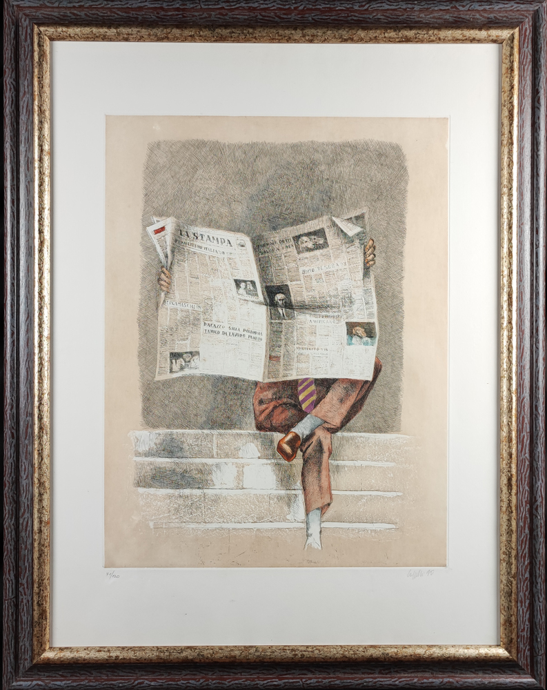 Litografia pastellata su carta 65x87 cm; firma in basso a destra, tiratura 7/120 in basso a sinistra.