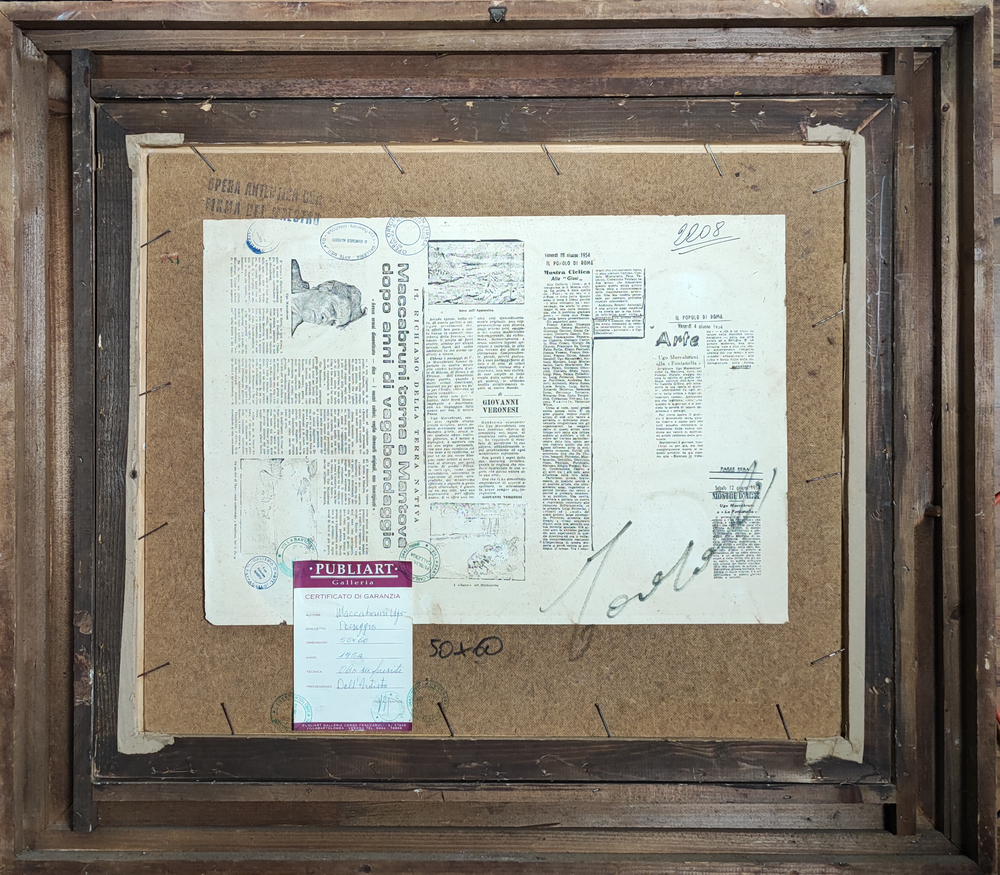 Olio su masonite 50x60 cm; firma in basso a destra, firma, autentica dell'artista e certificato di garanzia a cura della Galleria Publiart al retro.