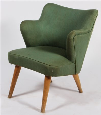 PULITZER FINALI GUSTAVO (1887 - 1967) Poltroncina. Legno e stoffa. Cm 59,00 x 77,00 x 51,00. Anni '50. Poltrona facente parte dell'arredamento della sala di scrittura di prima classe della nave Esperia. Bibliografia: Domus n.242, Gennaio 1950, pag. 16