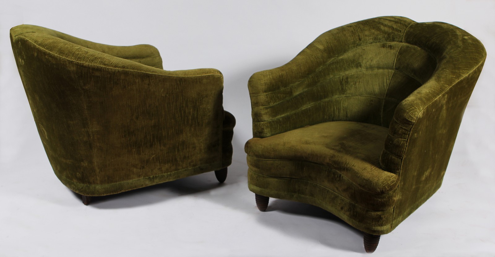 BUSIRI VICI ANDREA (1903 - 1989) Coppia di poltrone. Legno e tessuto. Cm 58,00 x 81,00 x 85,00. Bibliographie: Irène de Guttry - Maria Paola Maino, Il mobile italiano anni '40 e '50, Ed. Laterza 1983, riproduzione p. 120.