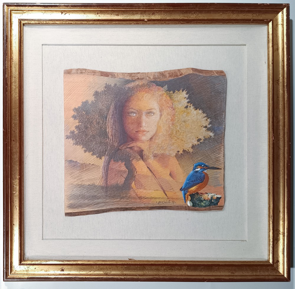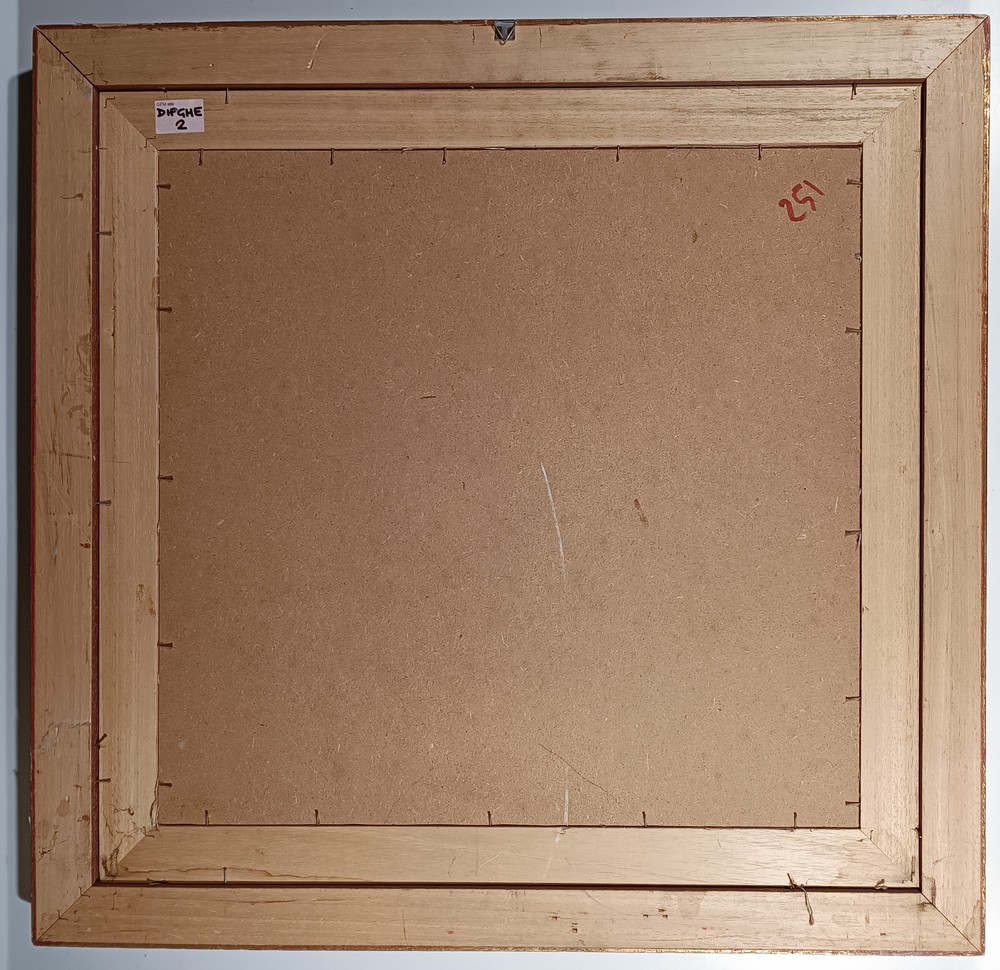 Tecnica mista su tavola 50x50 cm; firma e anno in basso a destra.