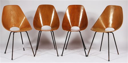 NOBILI VITTORIO (n. 1935) Quattro sedie modello Medea. Compensato curvo e...