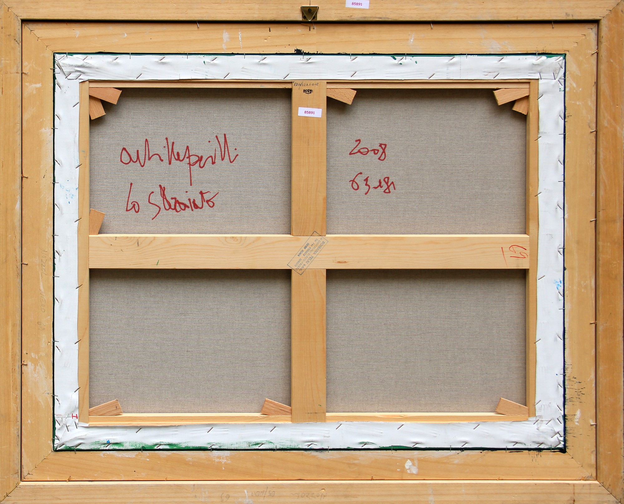 Firma, data, misure "Achille Perilli, 2008, 65x81" (al retro)