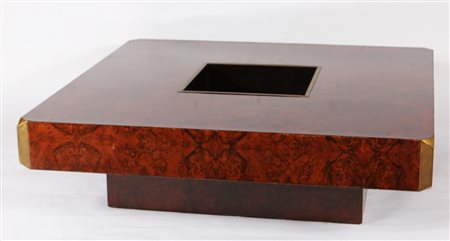 RIZZO WILLY (n. 1928) Coffee table. Radica di noce.. Cm 120,00 x 34,00 x 120,00. Prodotto per Luigi Sabot. Anni '70.