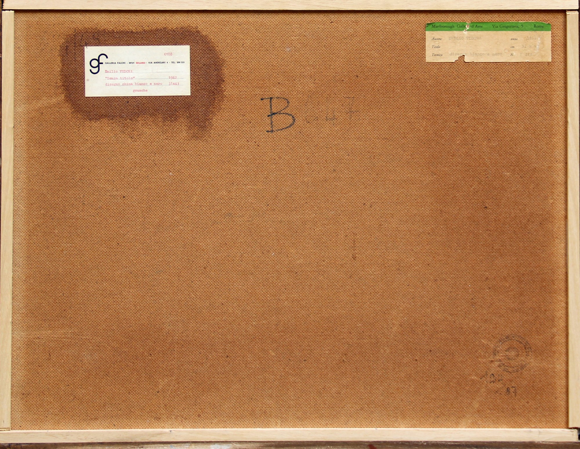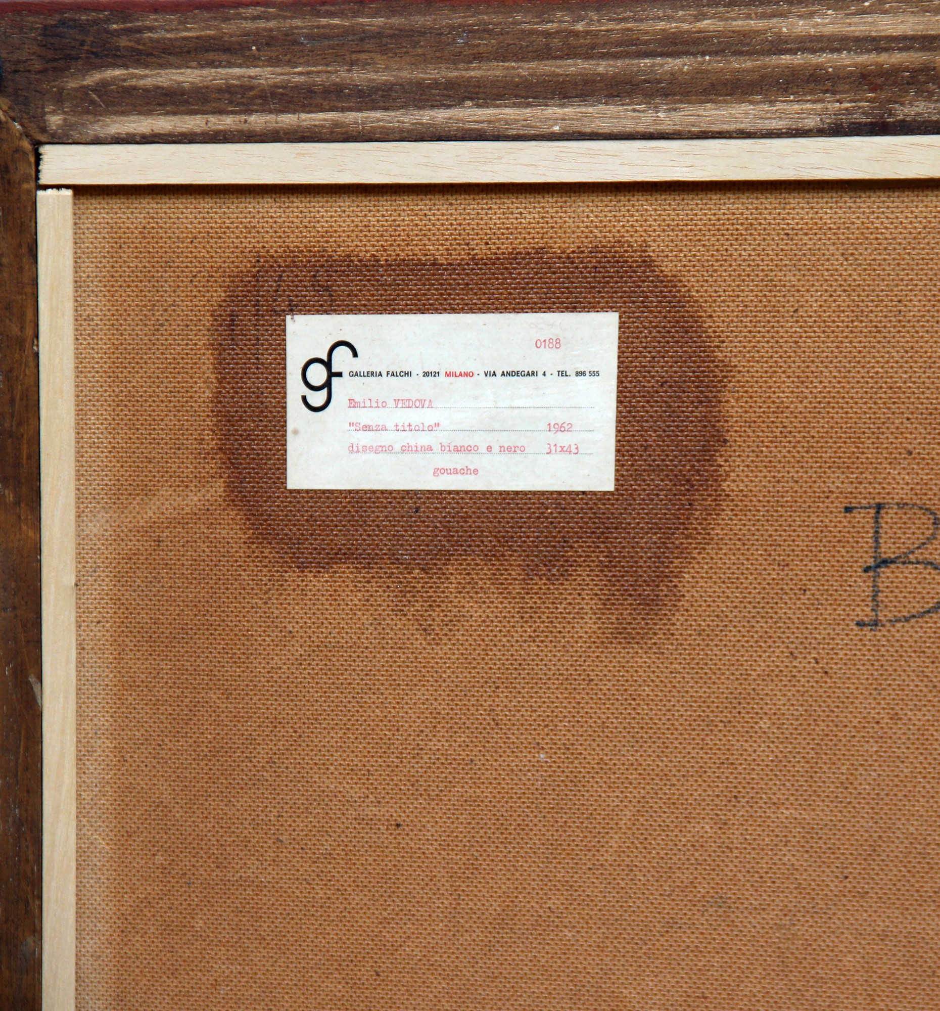 etichetta della Galleria Falchi, Milano (al retro)
