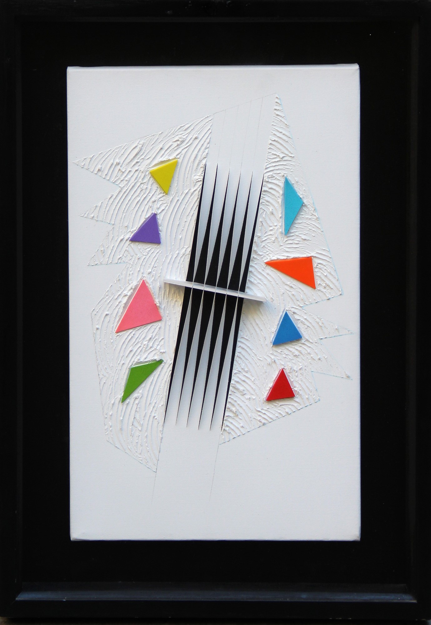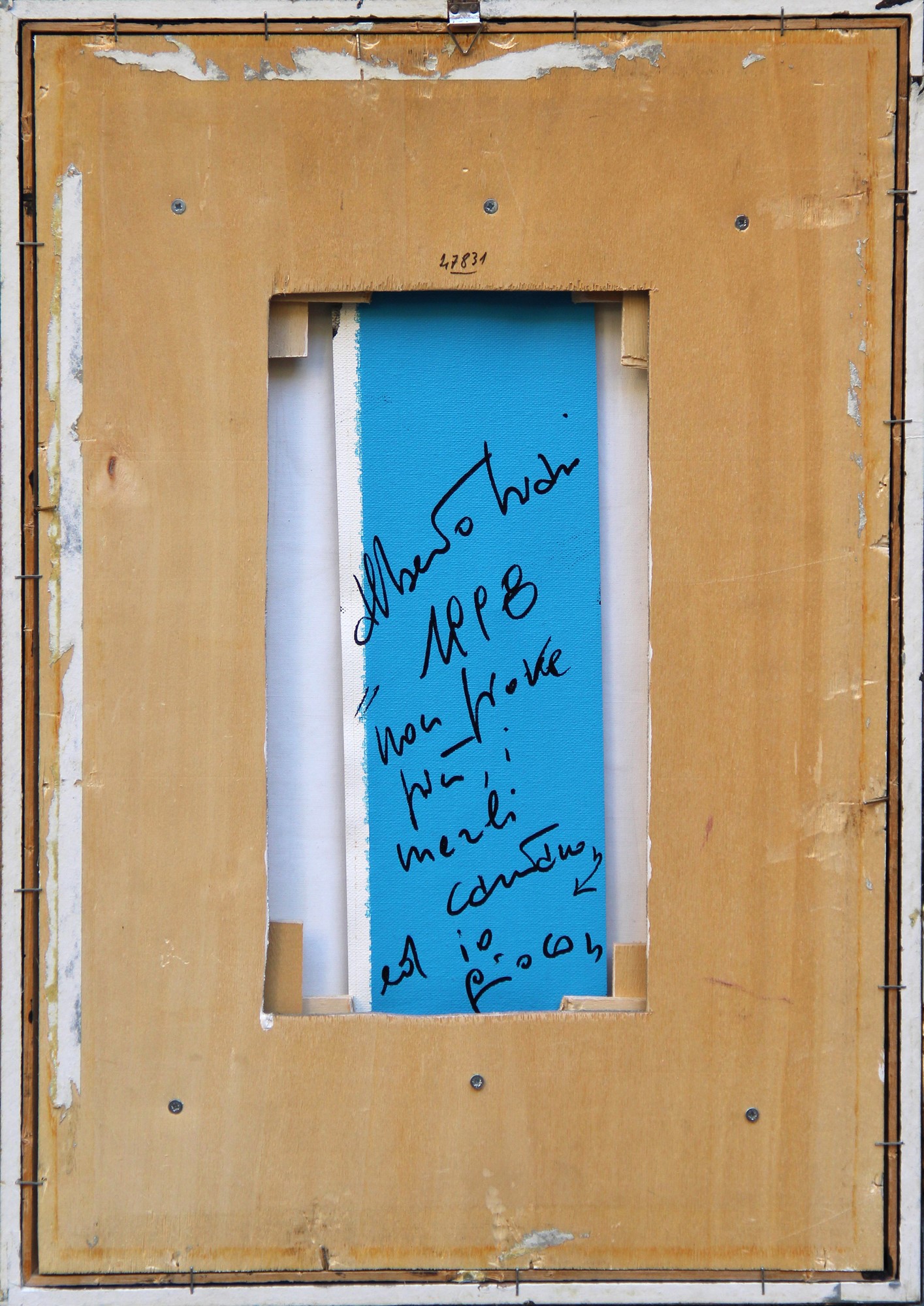 Firma, data, titolo "Alberto Biasi, 1998, Non piove più, i merli cantano ed io gioco" (al retro)
