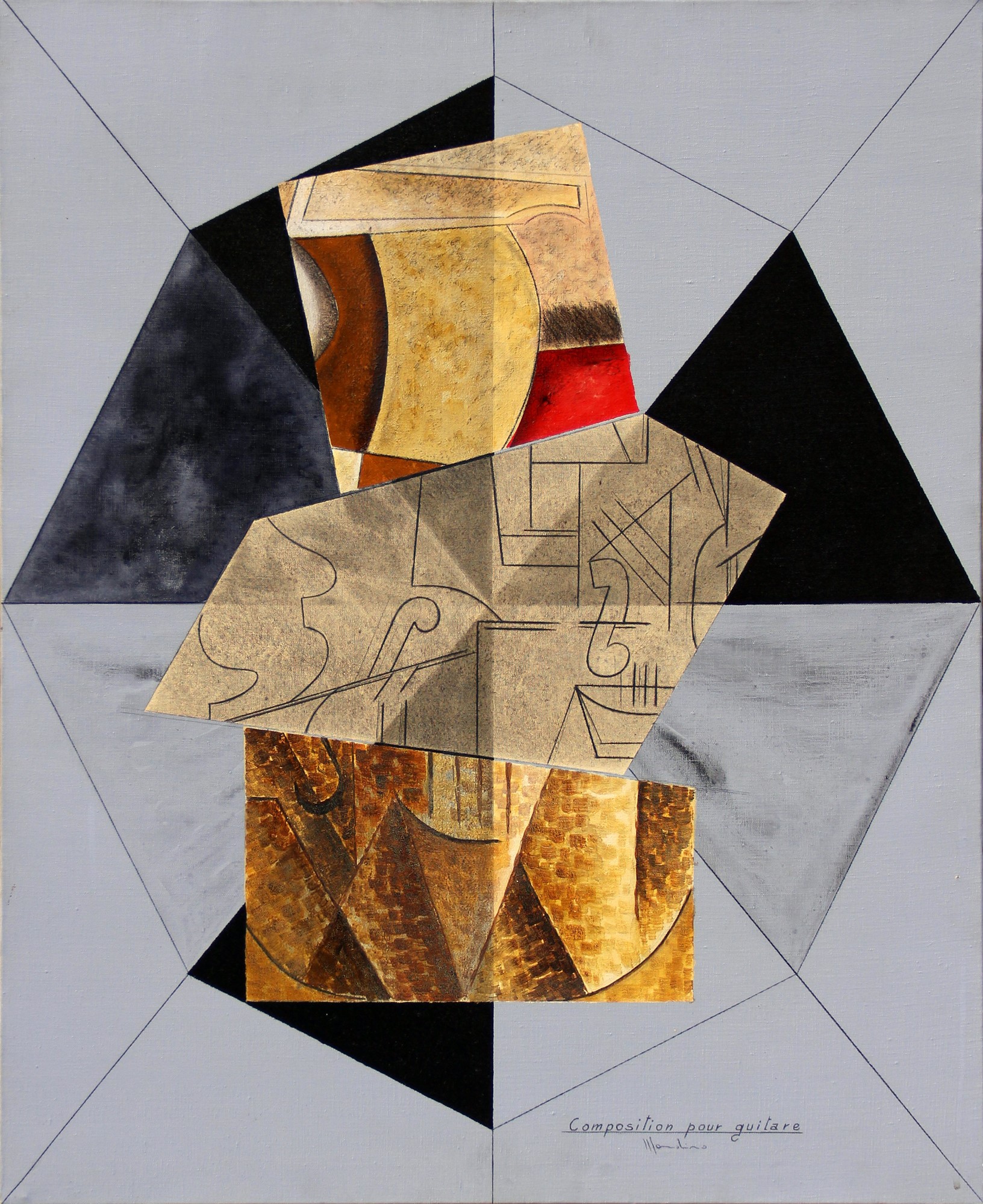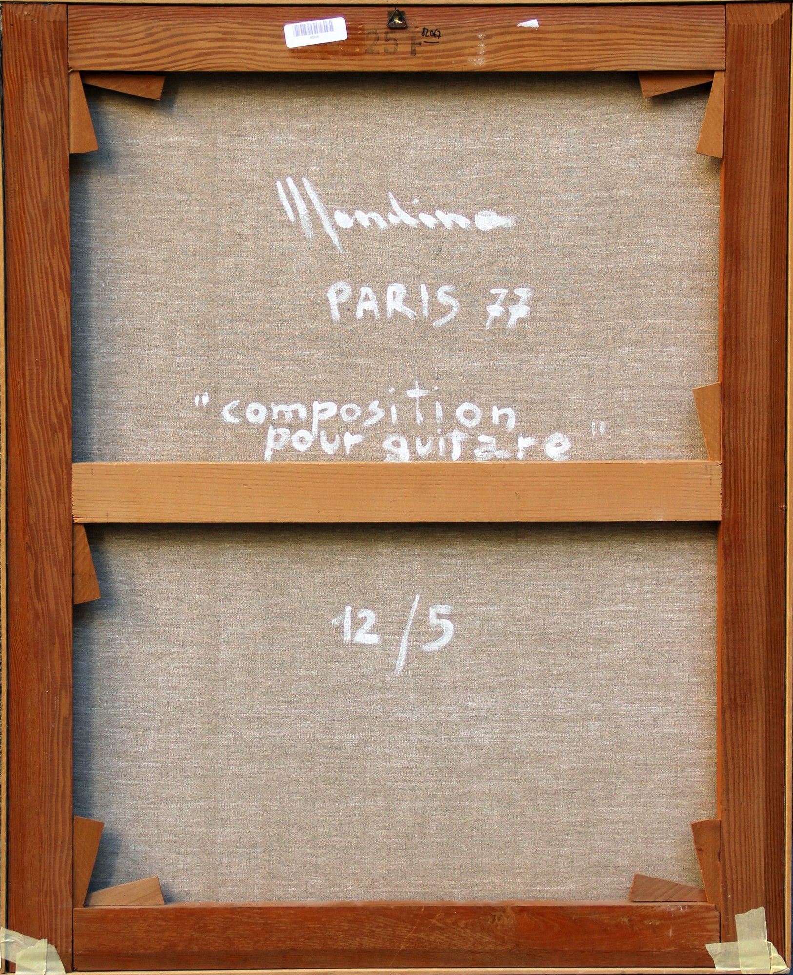 Firma, data, titolo "Mondino, Paris 77, Composition pour guitare" (al retro)