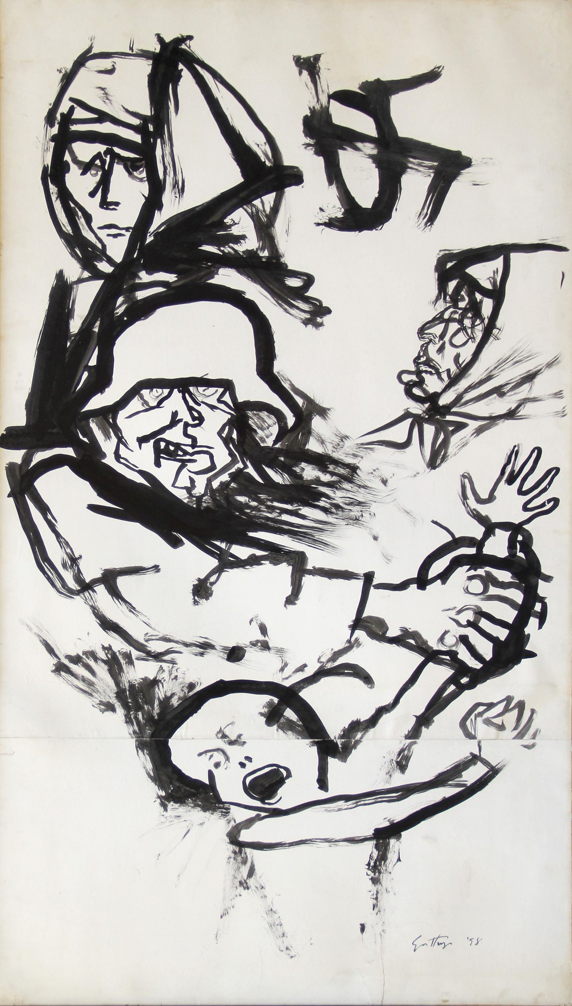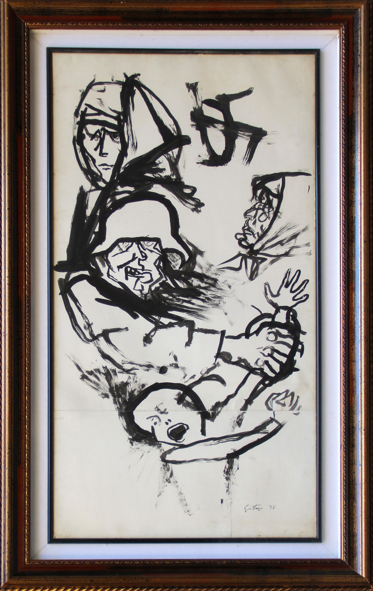 tecnica mista su carta intelata, cm. 134.5x69.5