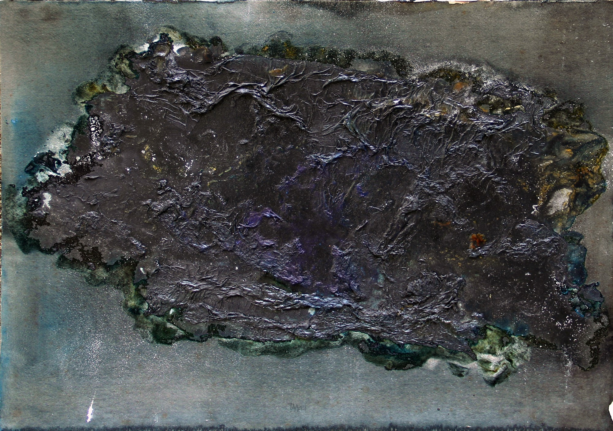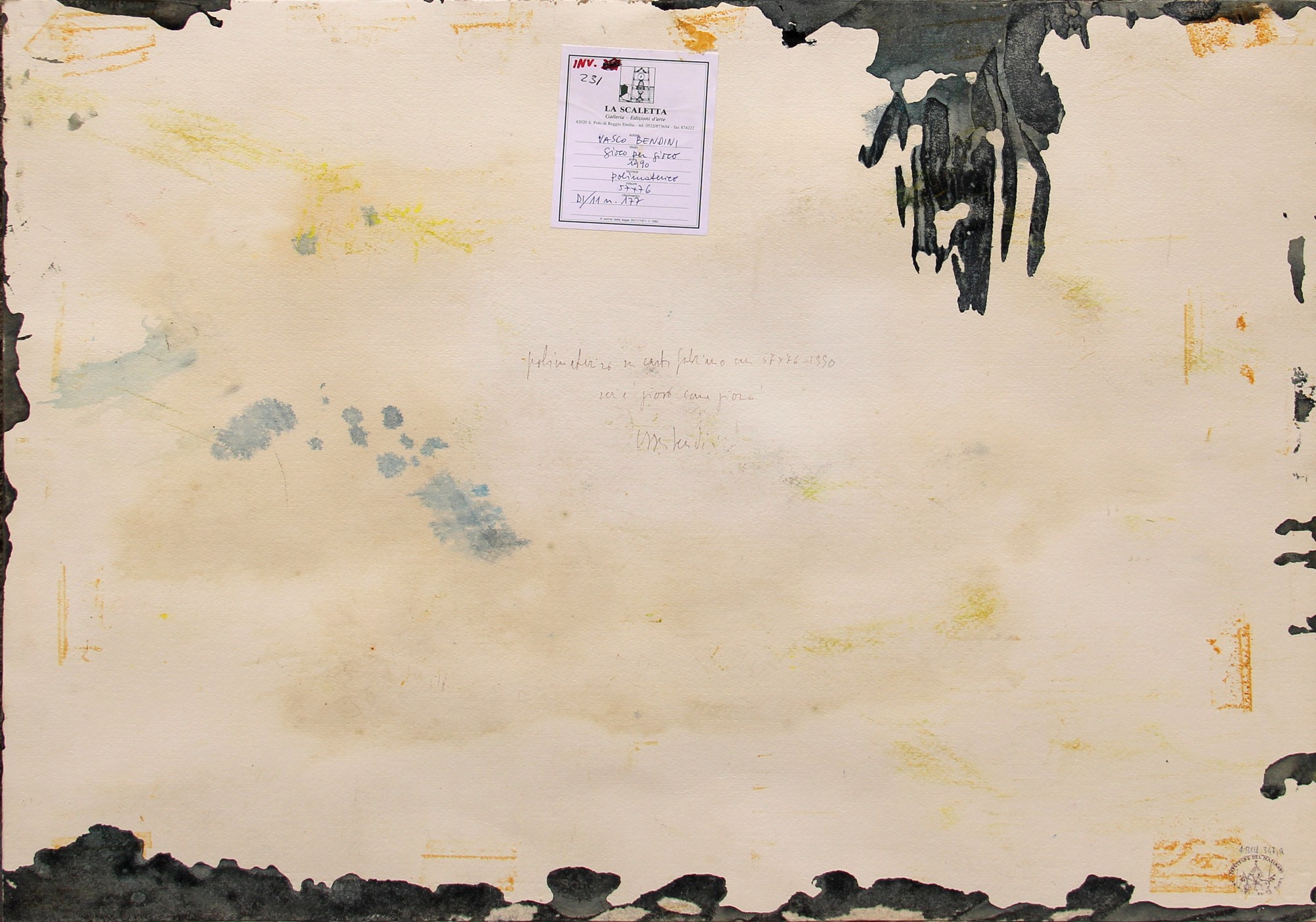 Tecnica, misure, data, titolo, firma "Polimaterico su carta, cm. 57x76, 1990, Gioco per gioco, Vasco Bendini";