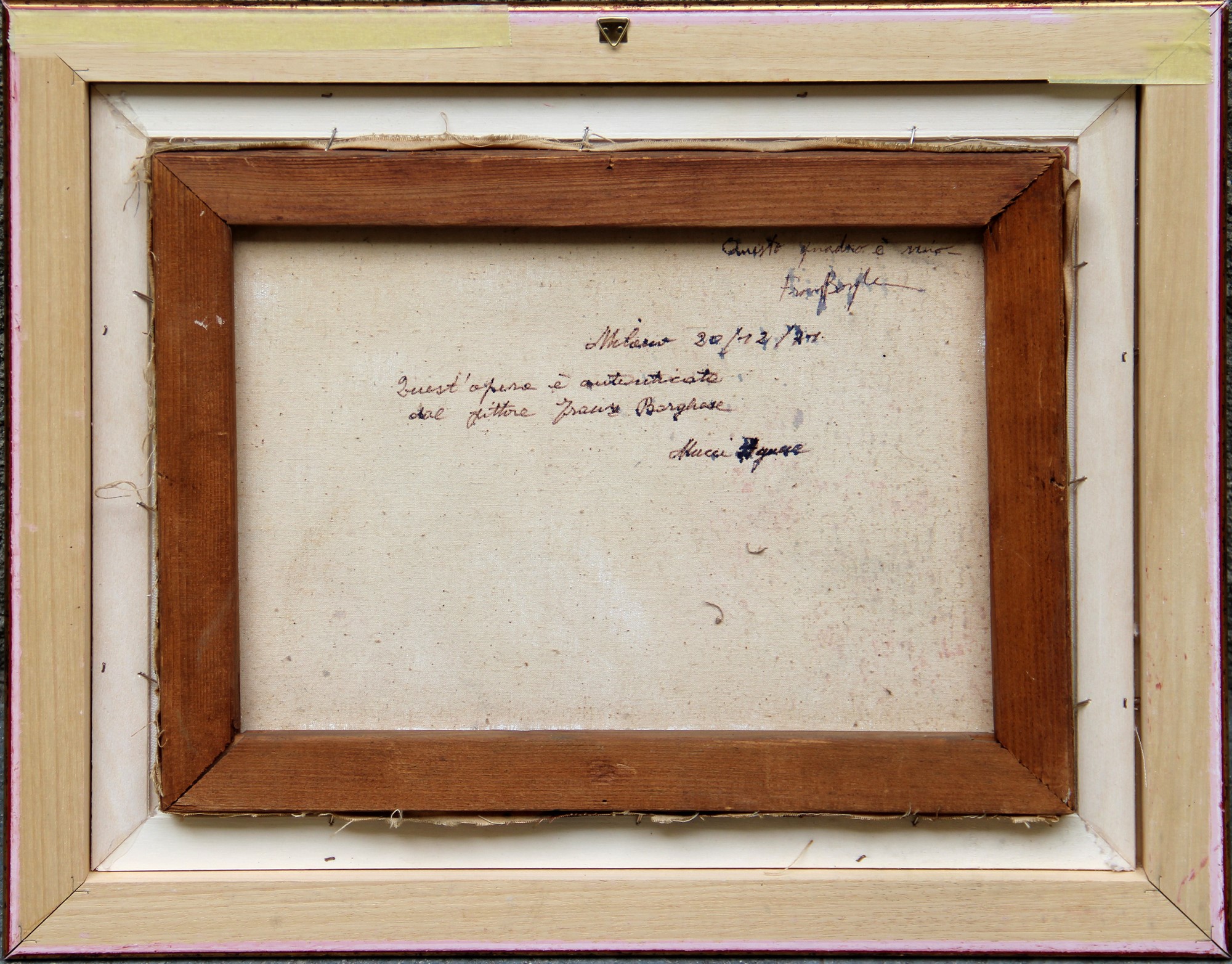 Dichiarazione, firma "Questo quadro è mio, Franz Borghese" (al retro)
