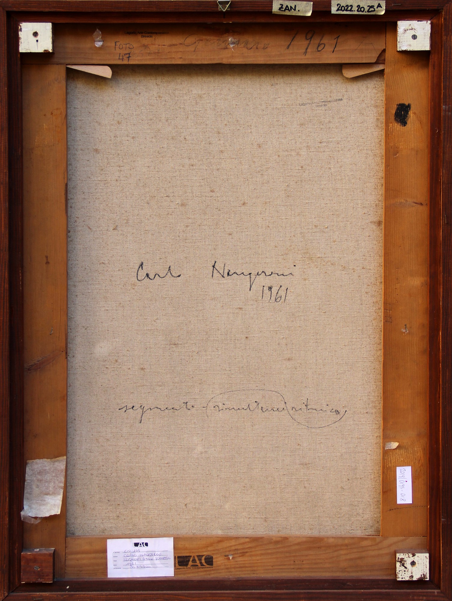 Firma, data, titolo "Carlo Nangeroni, 1961, Segmenti ritmico simmetrici";