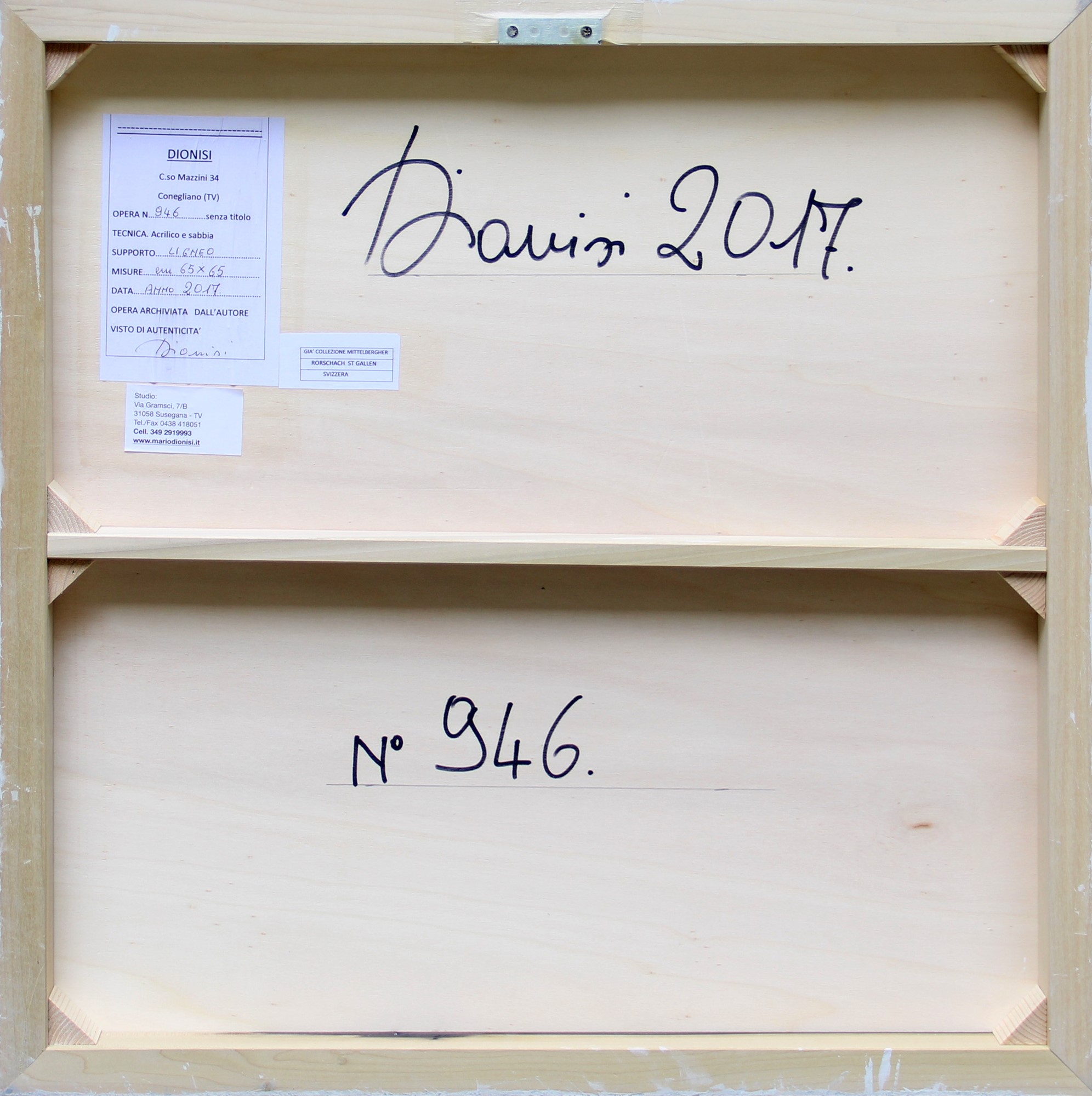 Firma, data, numerazione "Dionisi, 2017, n. 946";