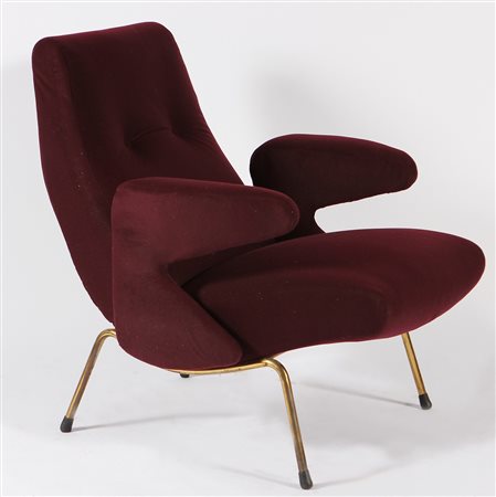 CARBONI ERBERTO (1899 - 1984) Poltrona modello Delfino. Metallo e tessuto. Cm 80,00 x 84,00 x 71,00. Prodotto per Arflex.