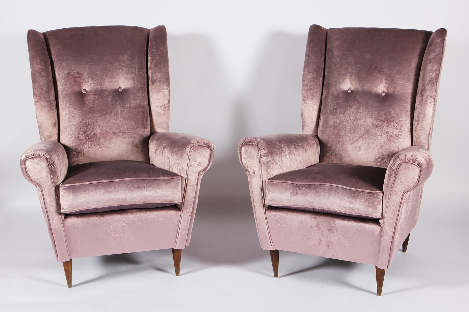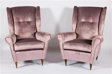 MANIFATTURA ITALIANA DEL XX SECOLO Coppia di poltrone. Legno e tessuto. Cm...