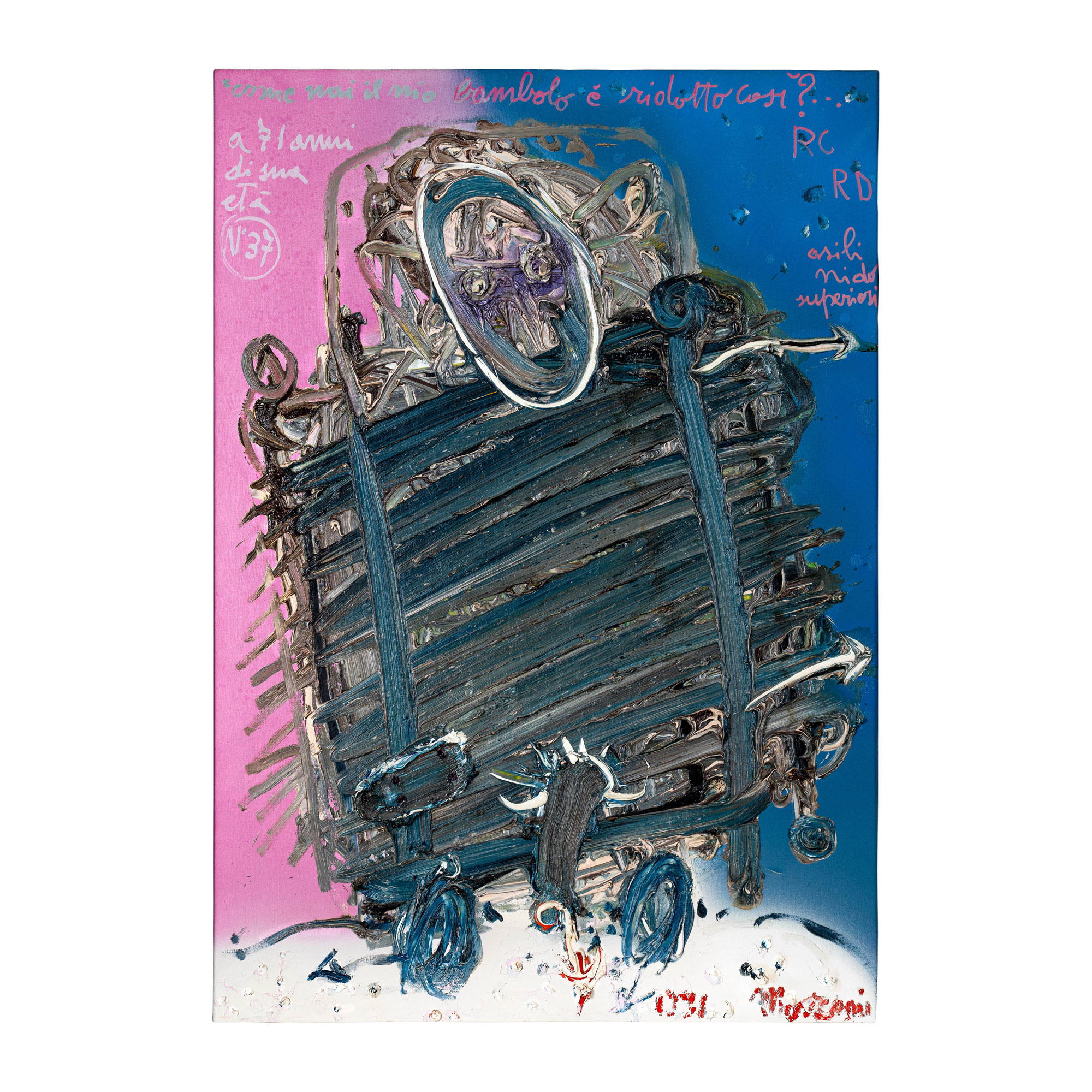 (retro) firma, anno, misure "autoritratto n. 37/il bambolo"