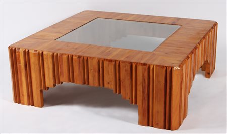 BILANGIONE SILVIO Tavolino sagomato. Legno. Cm 113,00 x 38,00 x 110,00. Attribuizione a Silvio Bilangione per fumagalli. Anni '70.