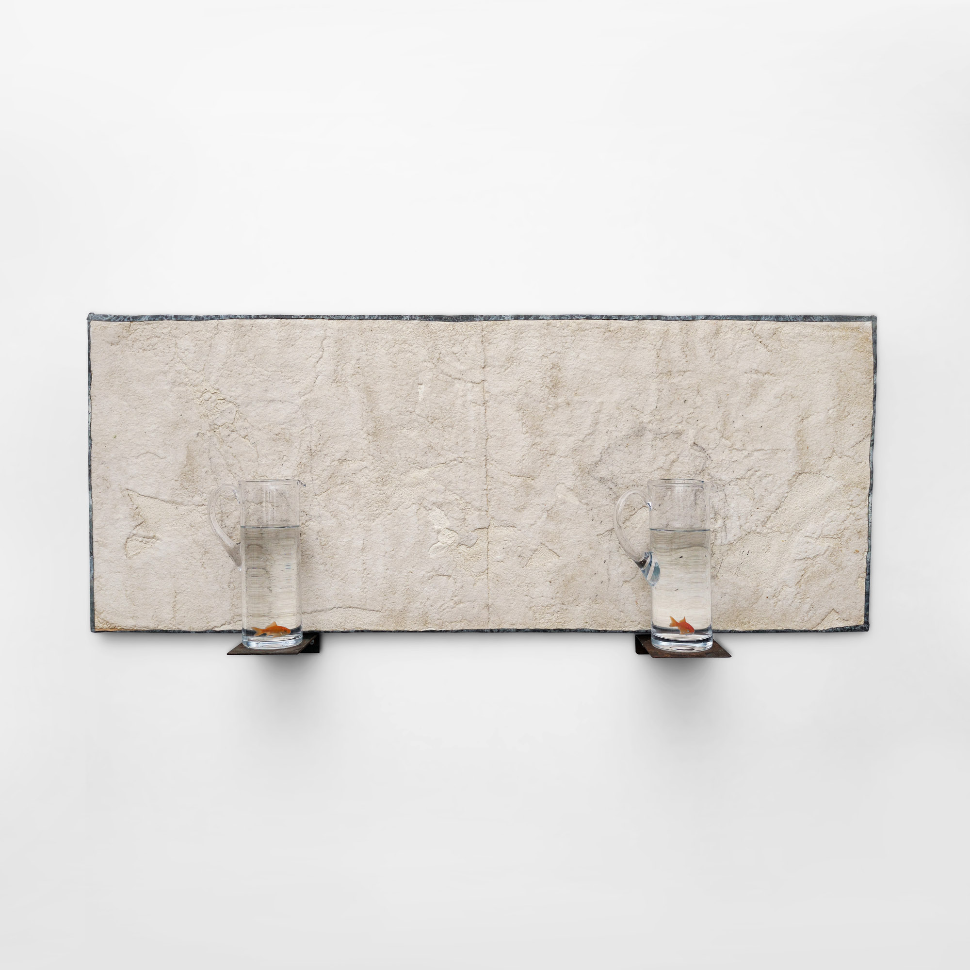 L'opera si compone di una lastra di sale su cartone posta su un pannello di derivato del legno, con cornice in piombo; due mensole in ferro, due caraffe in cristallo riempite con acqua e due pesci rossi .