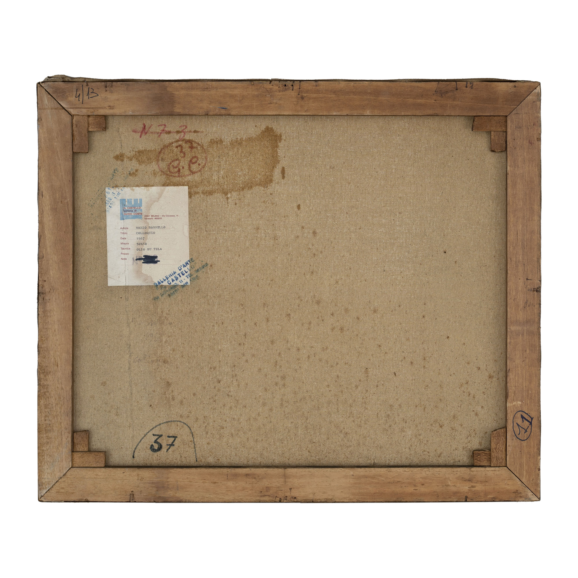 Etichetta e timbri della Galleria Il Castello, Milano sul retro