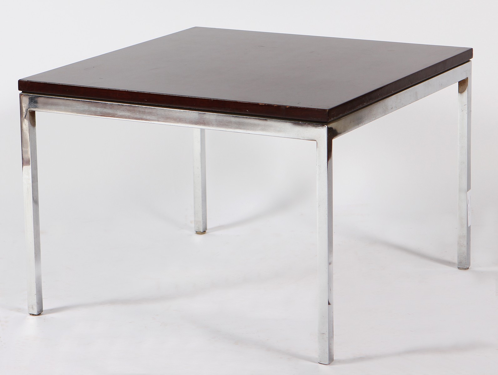 KNOLL FLORENCE (n. 1917) Tavolino. Metallo cromato e palissandro. Cm 60,00 x 61,00 x 42,00.