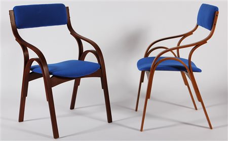 GIOTTO STOPPINO, VITTORIO GREGOTTI E LODOVICO MENEGHETTI Poltroncine serie Piemonte. Legno e tessuto. Cm 54,00 x 83,00 x 50,00. Prodotto per Brusadelli, Lecco. Bibliografia: Artecasa n.19, Aprile 161.