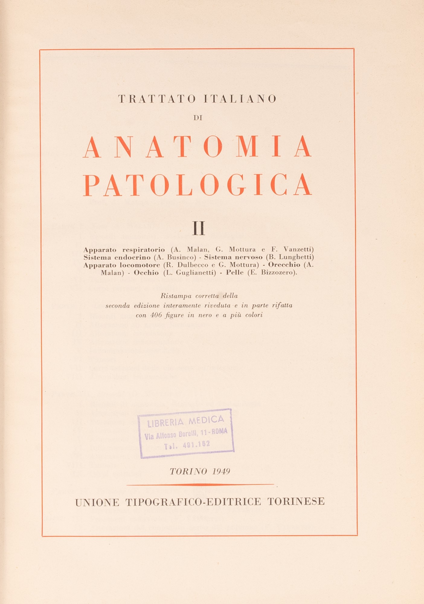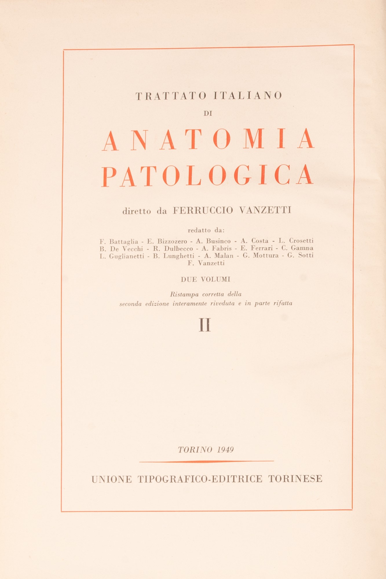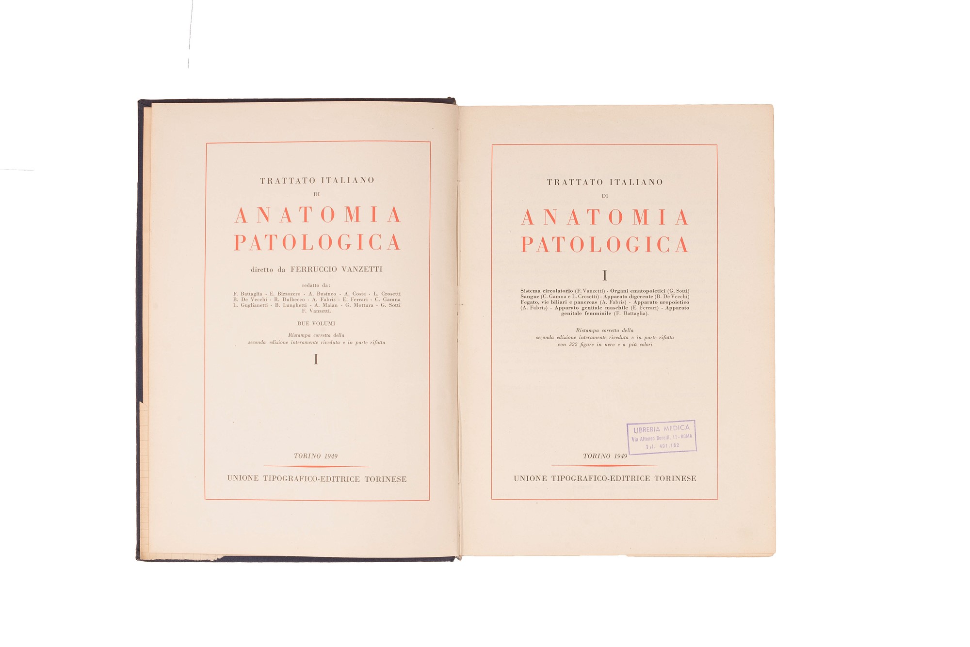 b) Trattato Italiano di Anatomia Patologica, Torino, 1949. Unione Tipografico Editrice Torinese. Due volumi;