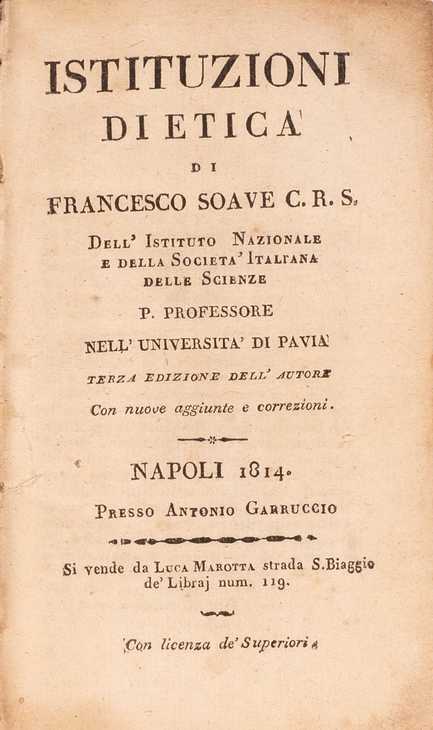 Istituzioni di etica di Francesco Soave dell'Istituto Nazionale e della Società Italiana delle Scienze , professore nell'Università di Pavia