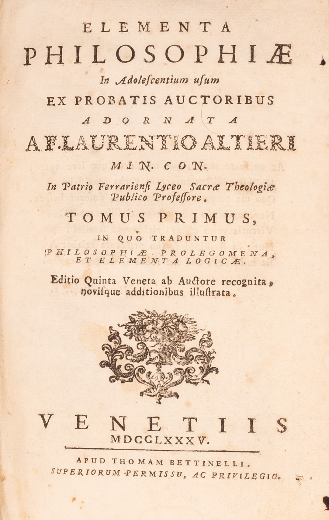 Elementa philosophia in adolescentium usum ex probatis auctoribus adornata a F. Laurentio Altieri