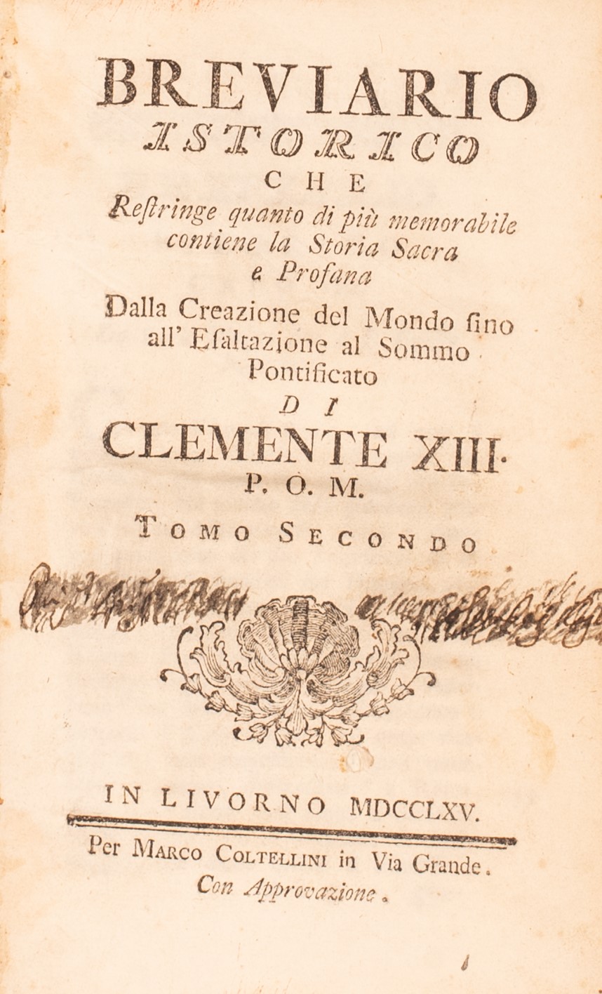 Breviario istorico che restringe quanto di più memorabile contiene la storia sacra e profana dalla creazione del mondo fino alla esaltazione al sommo pontificato di Clemente XIII