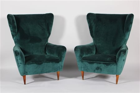 MANIFATTURA ITALIANA DEL XX SECOLO Coppia di poltrone. . Legno e velluto. Cm 73,00 x 98,00 x 60,00. Anni '40.