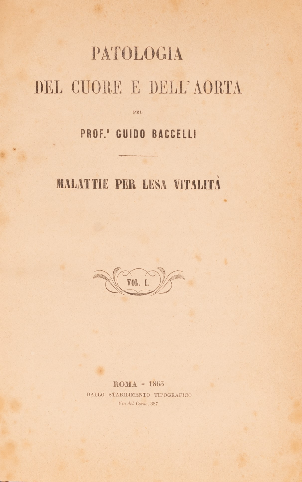 b) Patologia del cuore e dell'aorta del Prof. Guido Baccelli. Malattie per lesa vitalità, Roma, 1863;