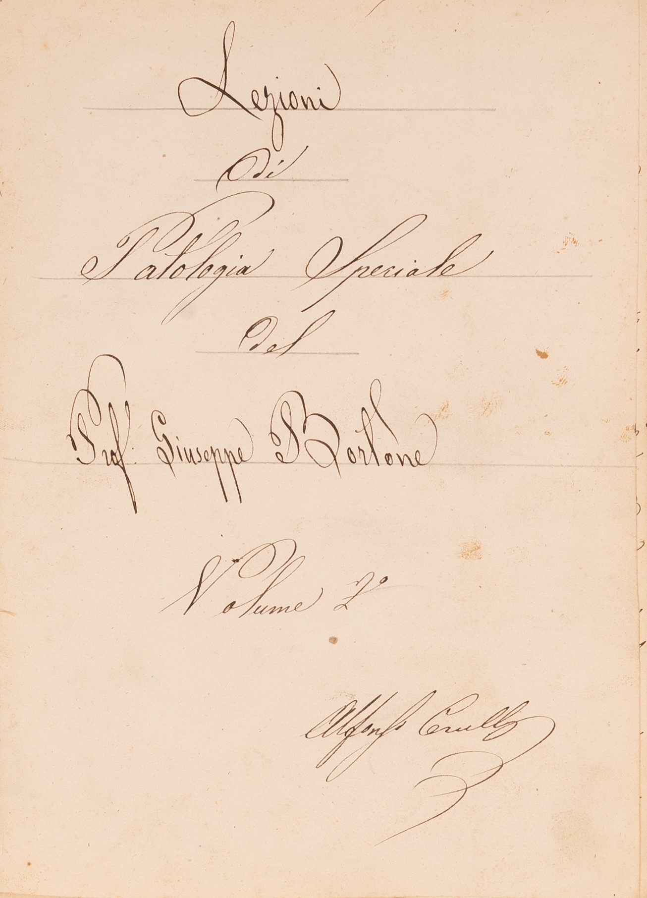 d) Lezione di Patologia Speciale del Prof. Giuseppe Bortone, 2 Volumi di 3 (Vol. I e III) di appunti in corsivo dalla stessa mano e con diversi colori di penna;
