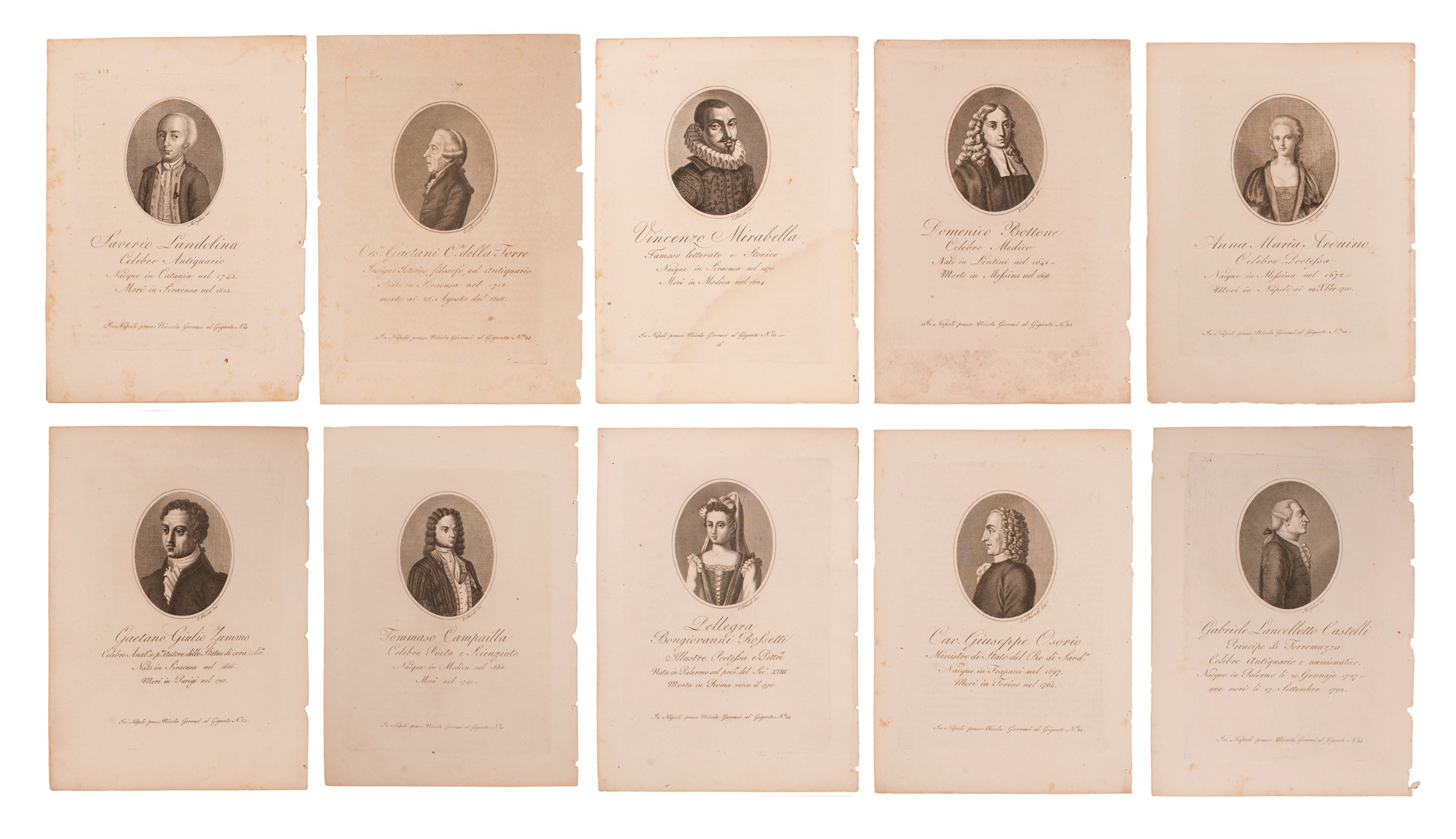 Guglielmo Morghen (1758 - 1833) lotto di 10 incisioni di importanti personaggi siciliani