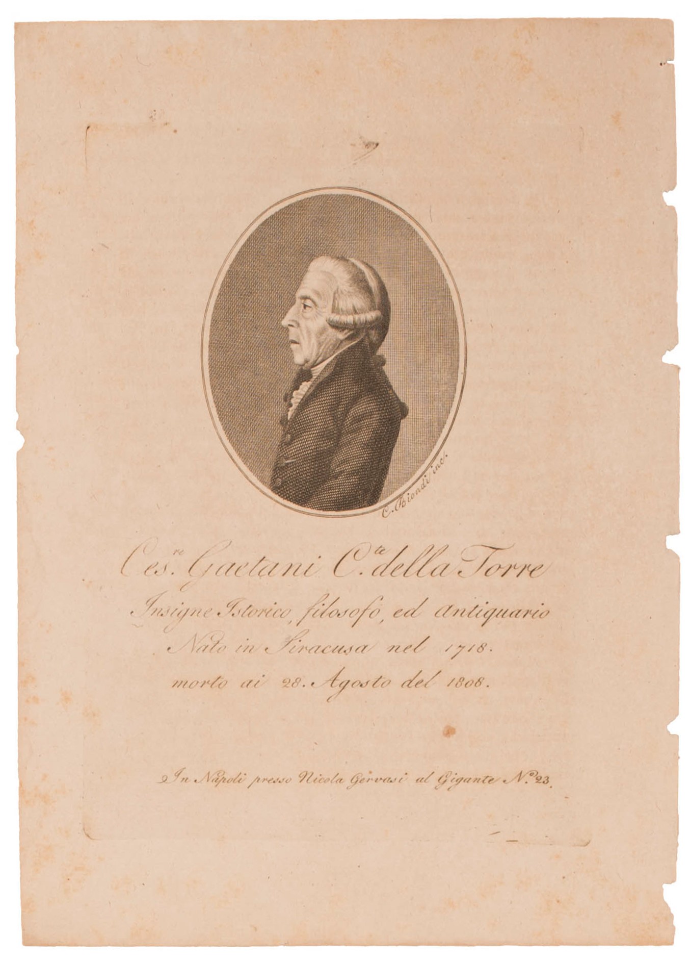 Guglielmo Morghen Stampate in Napoli presso Niccola Gervasi al Gigante, n. 23