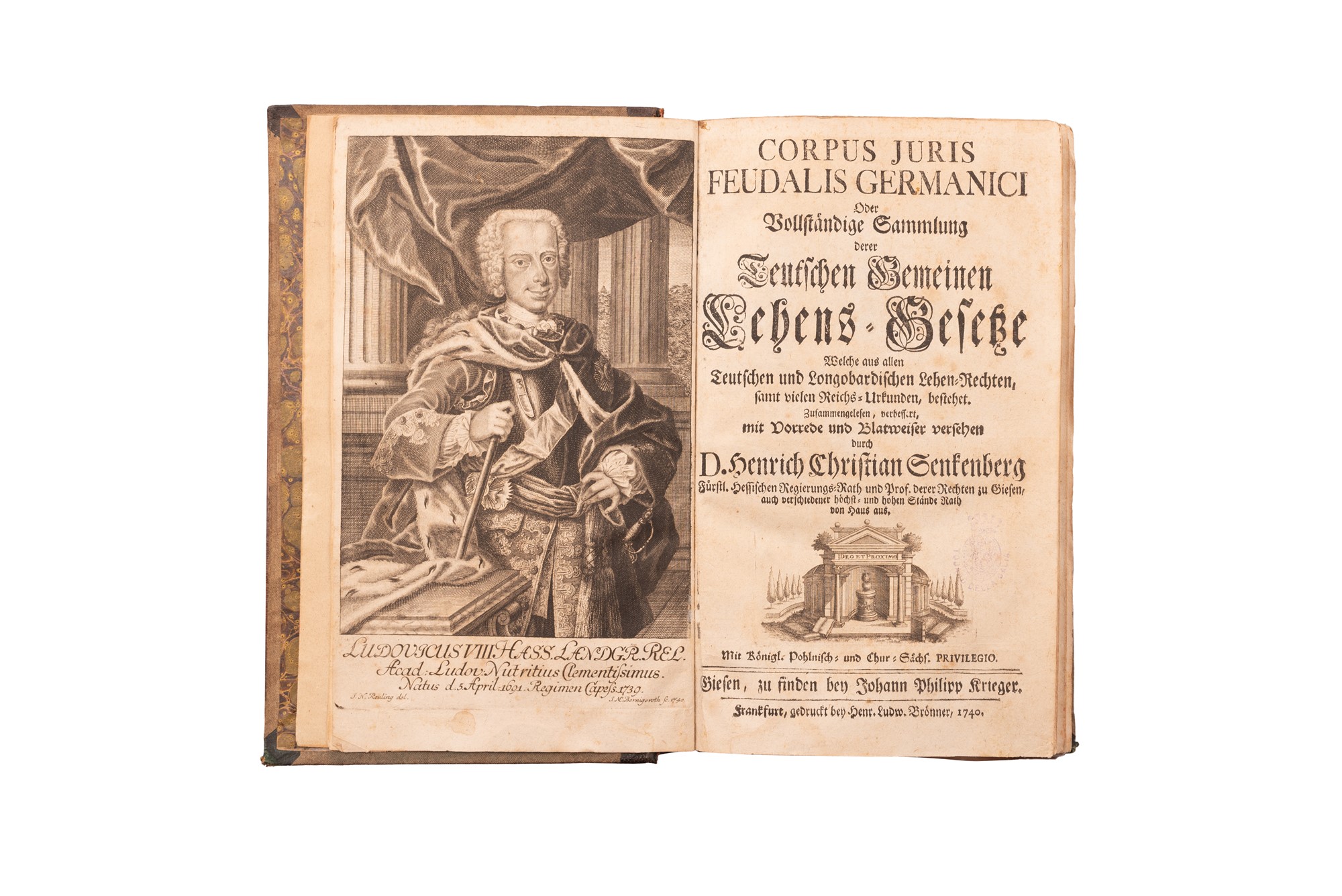 CORPUS JURIS FEUDALIS GERMANICI Oder Vollständige Sammlung derer Teutschen Gemeinen Lehens-Gesetze, Welche aus allen Teutschen und Longobardischen Lehen-Rechten, samt vielen Reichs-Urkunden, bestehet. gen 1740 Zu finden bey Johann Philipp Krieger