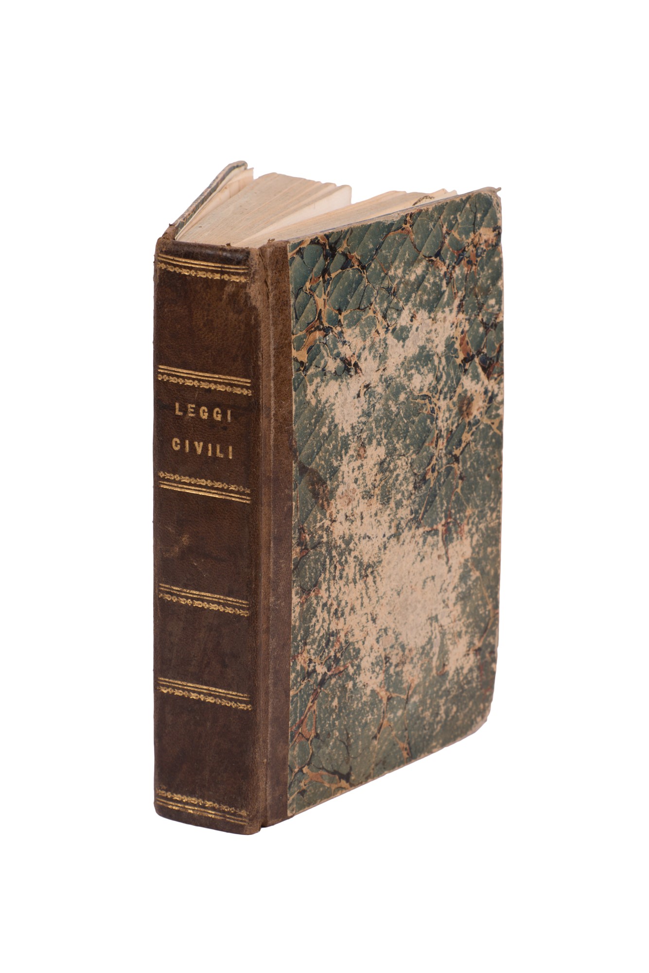 volume in mezza pelle con titoli e fregi in oro sul dorso, piatti marezzati con segni del tempo