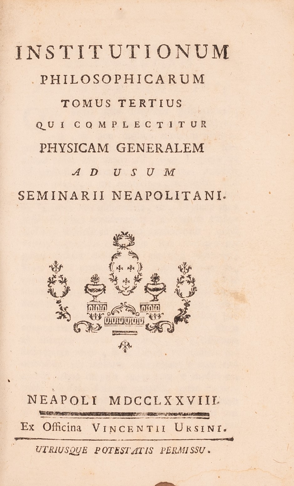 Institutionum Philosophicarum qui complectitur physicam generalem ad usum seminarii neapolitani.