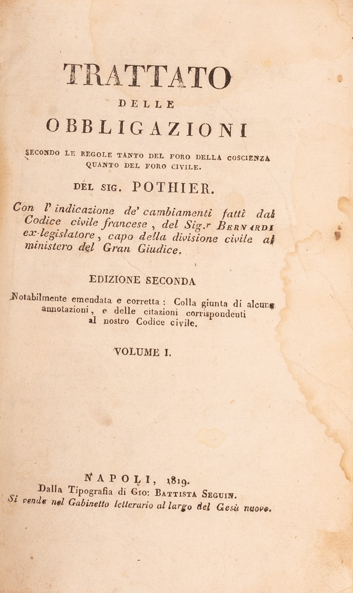 POTHIER TRATTATO DELLE OBBLIGAZIONI
