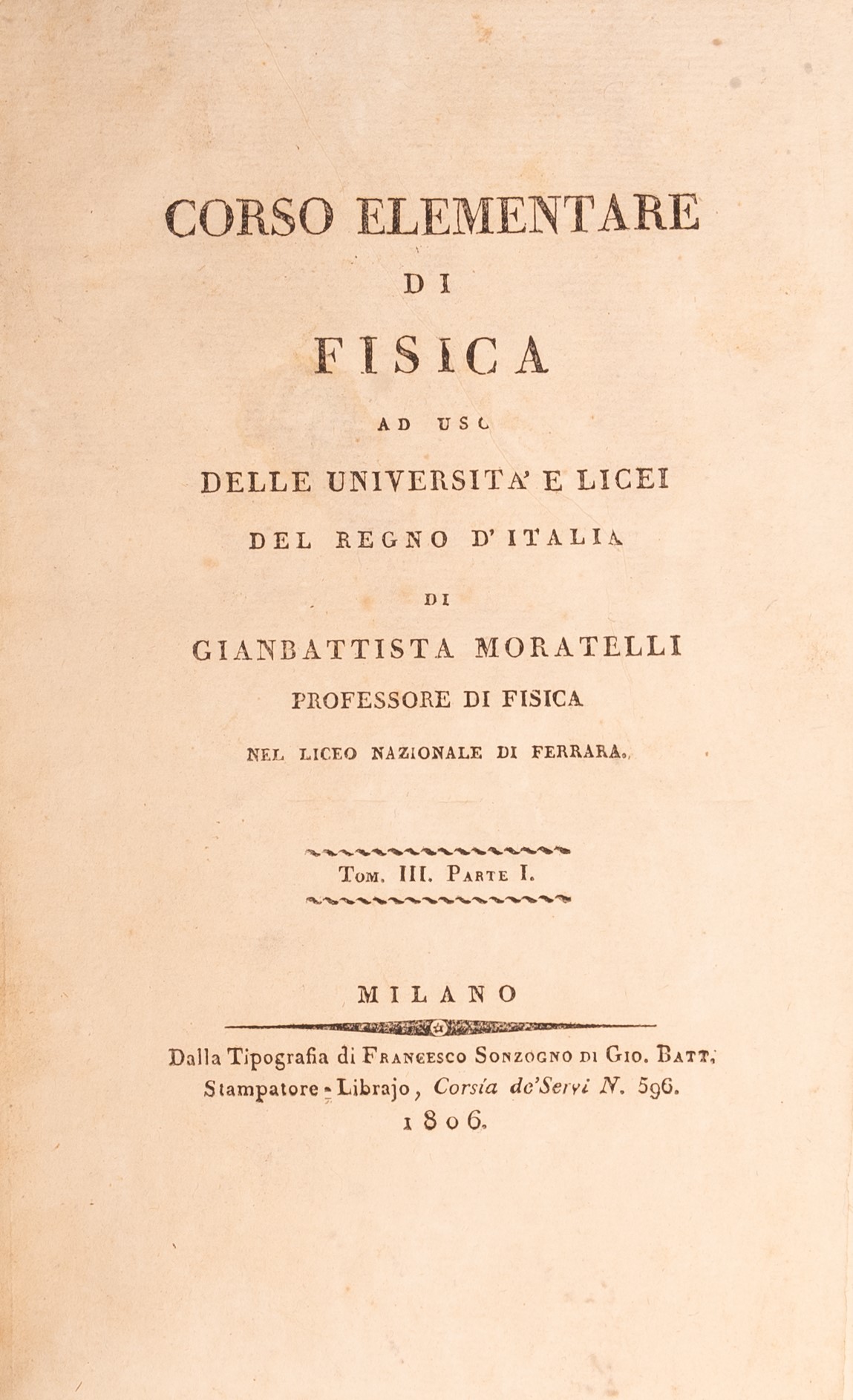 Corso elementare di fisica ad uso delle università e licei del Regno d'Italia di Giambattista Morantelli (Tomo III, Parte I)