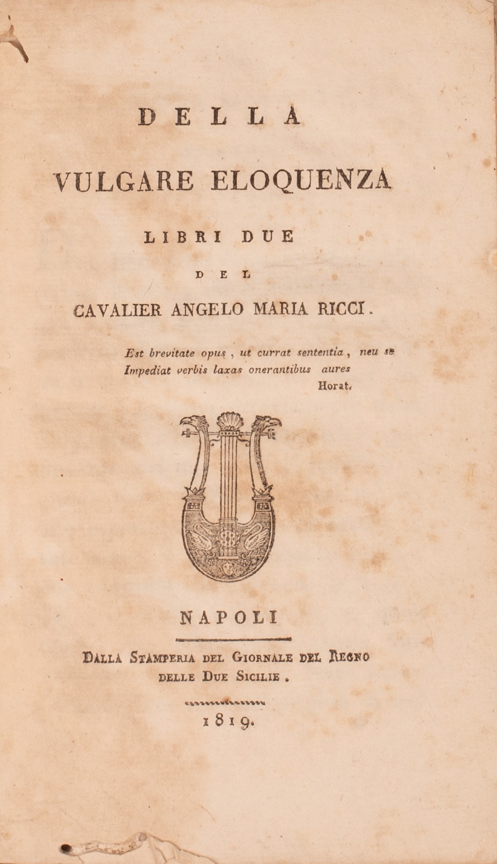 Della vulgare eloquenza libri due del Cavalier Angelo Maria Ricci