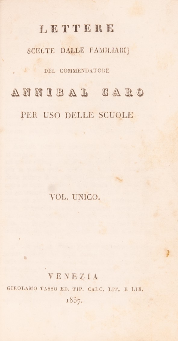 c) Letture scelte dalle familiarj del commendatore Annibal Caro per uso delle scuole. Vol. unico. Venezia, Girolamo Tasso. 1837;